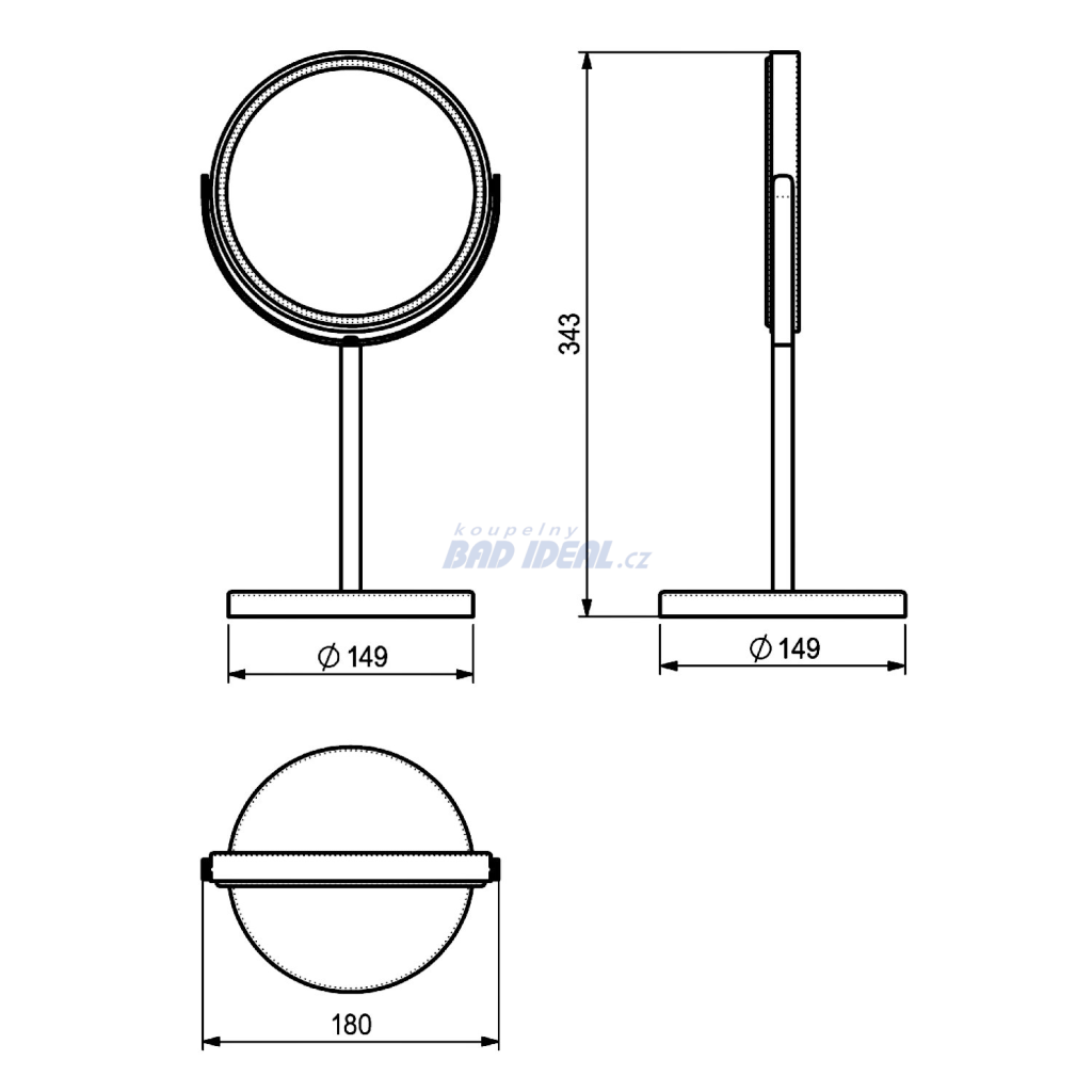 ANNA kosmetické zrcátko na postavení, Ø 163mm, oboustranné, chrom. Vlastnosti Značka GEDY Rozměr 180x343x149 mm Šířka 180 mm Výška 343 mm Hloubka 149 mm Barva Chrom Materiál Ocel Tvar Kruhové Druh Kosmetické zrcátko… Více informací