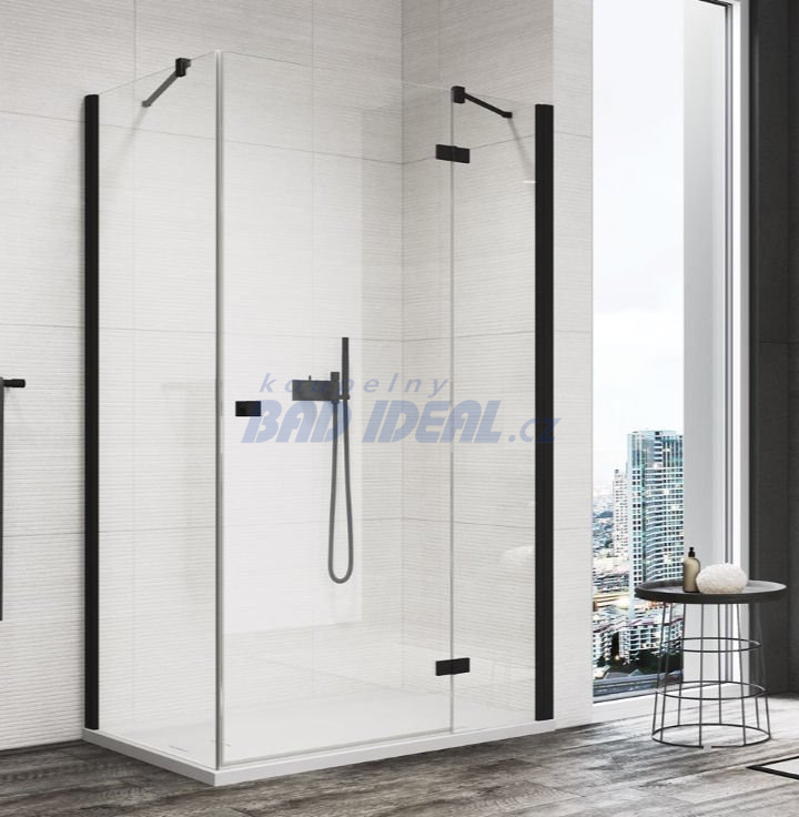 Uživatelská recenze produktu ANNEA jednokřídlé dveře s pevnou stěnou v rovině, s vyrovnávacím profilem (AN13) 1100 / 2000 mm černá matná / čiré Aquaperle vpravo