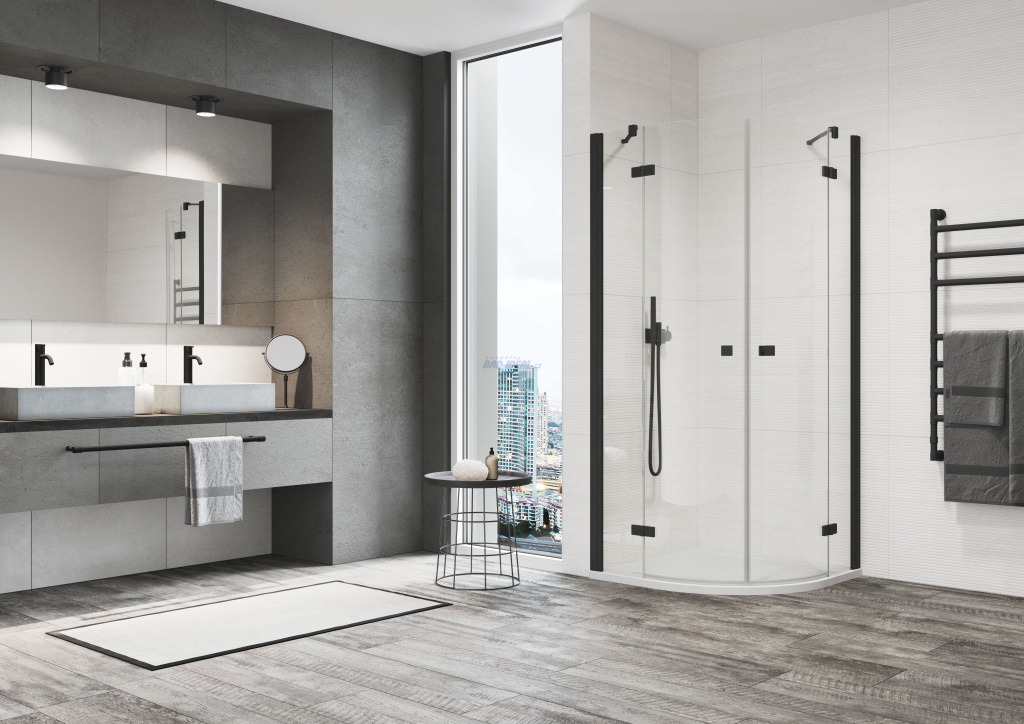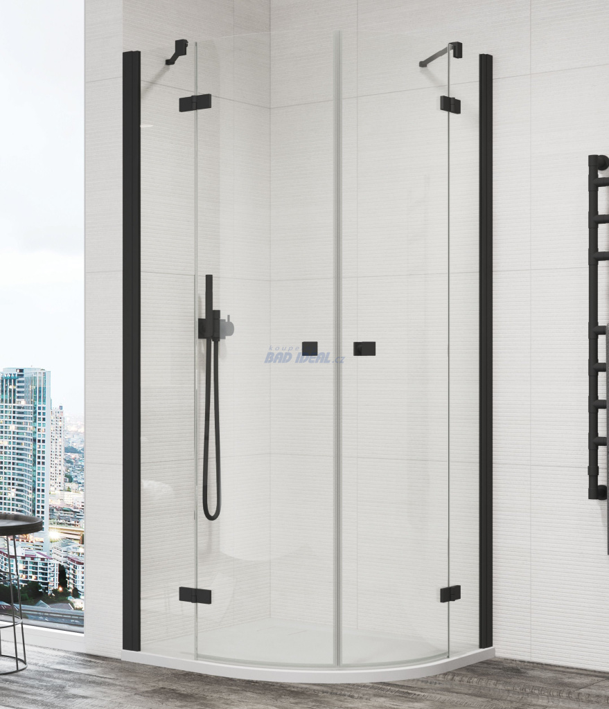 ANNEA sprchová zástěna čtvrtkruhová s dvoukřídlými dveřmi.