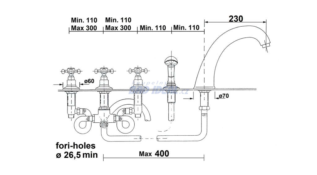 ANTEA pětiprvková baterie na okraj vany, bronz Vlastnosti Značka SAPHO Série ANTEA Šířka 500 mm Výška 220 mm Hloubka 230 mm Barva Bronz Materiál Mosaz Tvar Retro Instalace Na okraj vany Druh ovládání Kohoutek Hmotnost / ks 3… Více informací
