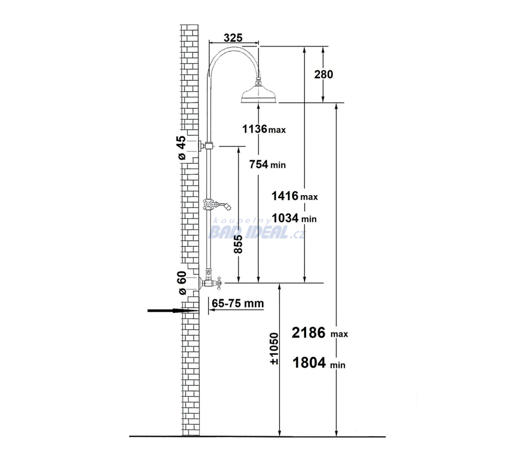 Ke sprchovému sloupu doporučujeme sprchovou baterii ANTEA 3861 nebo 3862 s roztečí přívodů 150 mm.