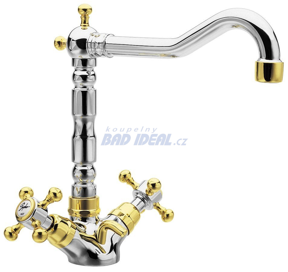 ANTEA stojánková umyvadlová baterie s retro hubicí s výpustí, chrom/zlato.