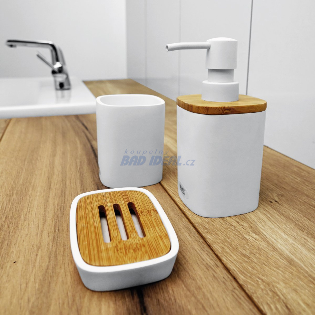 Materiál: polyresin, bambusové dřevo, pumpička plastová-bílá