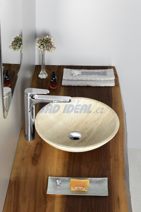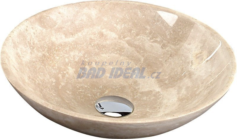 BLOK 1 kamenné umyvadlo na desku Ø 40cm, leštěný béžový travertin.