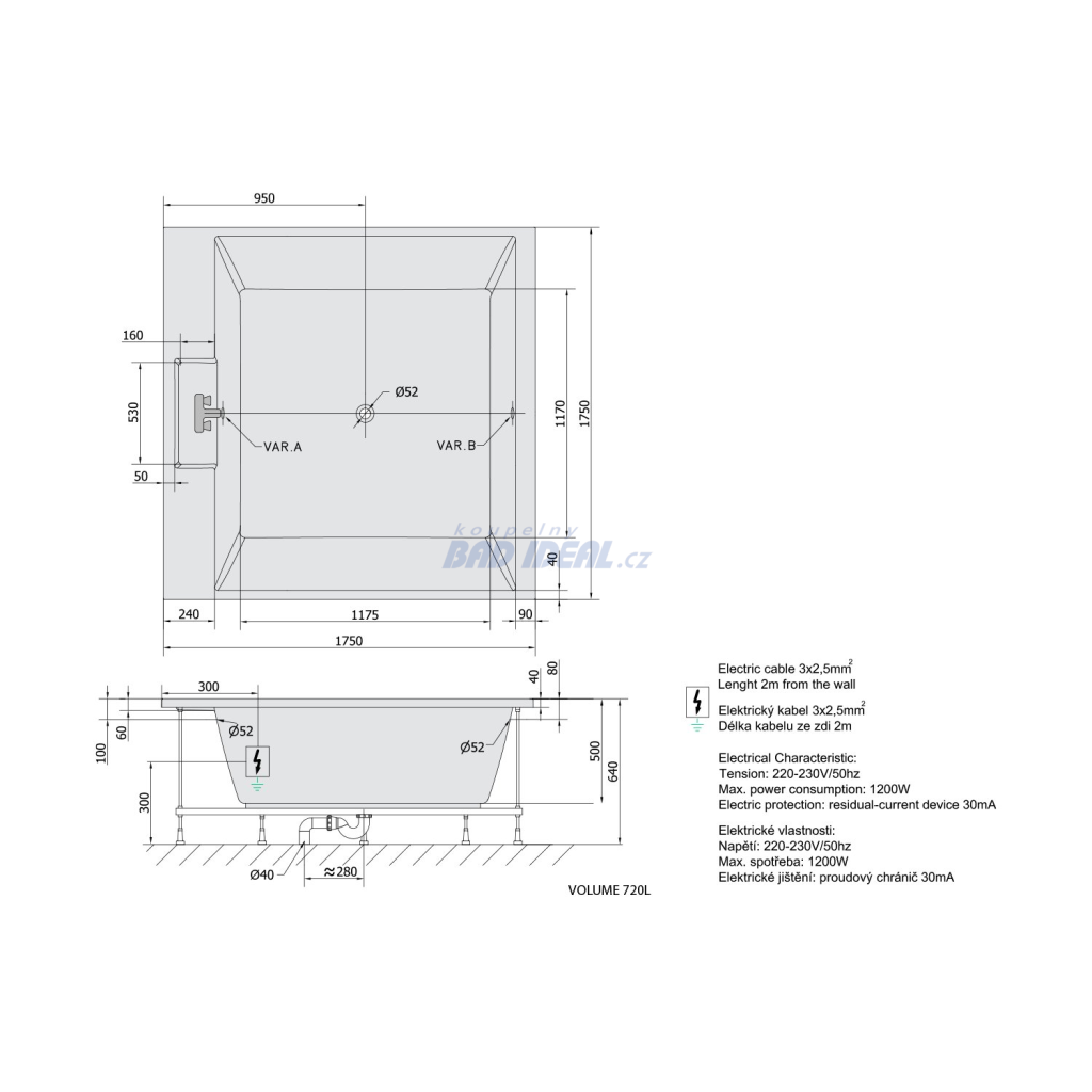 Rozměr 175x175x50 cm