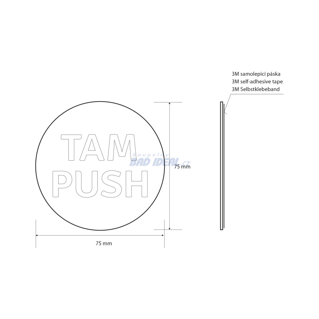 Cedule TAM/PUSH, Ø 75mm, nerez mat.