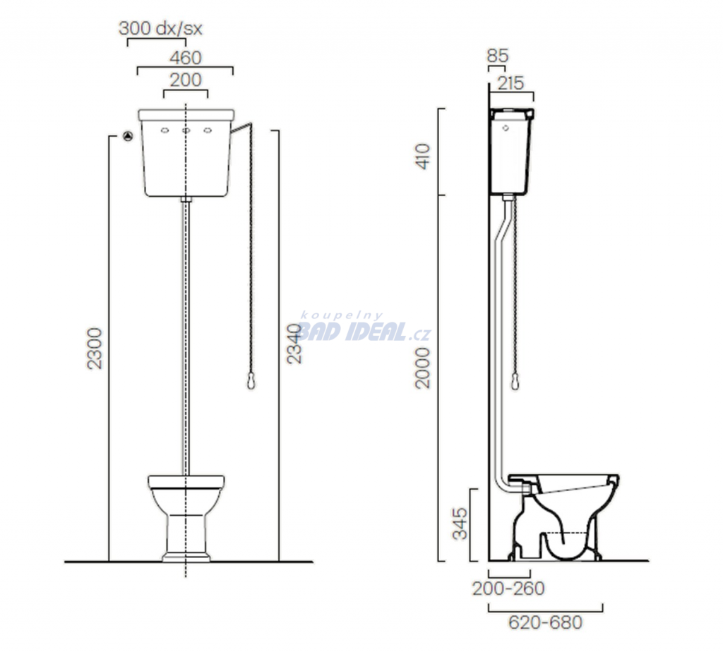 CLASSIC WC mísa s nádržkou, spodní odpad, bílá-chrom. Klasický styl od italského výrobce GSI.