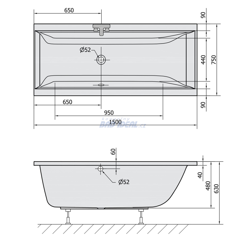 CLEO obdélníková vana 150x75x48cm, bílá mat.