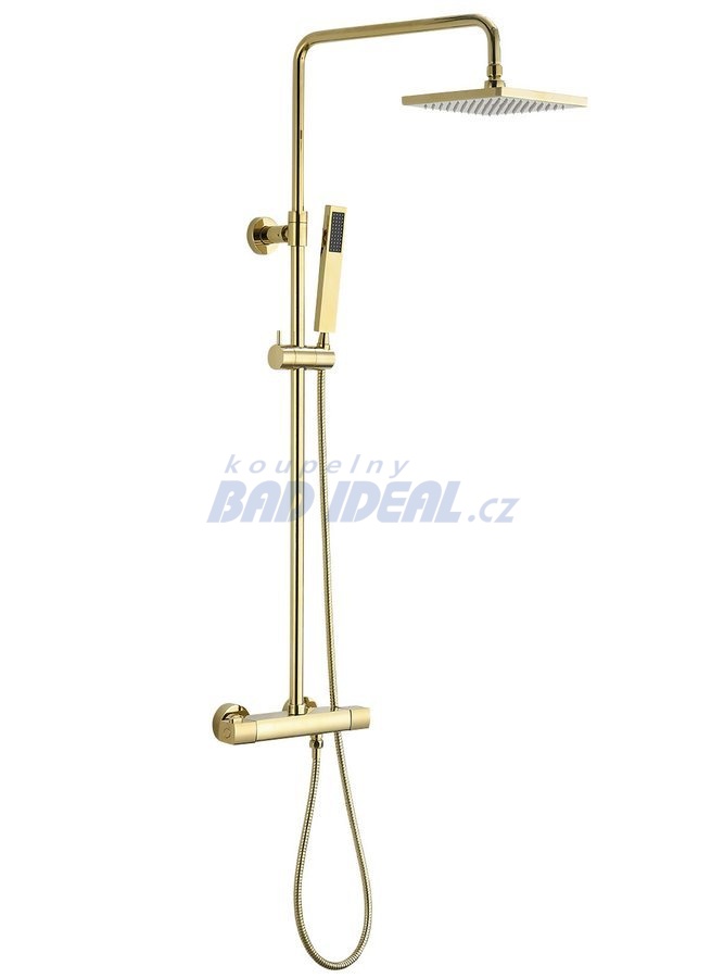 DAKAR teleskopický sprchový sloup s termostatickou baterií, zlato. Oblíbené baterie v chromu, černé, bílé, niklu a zlaté.