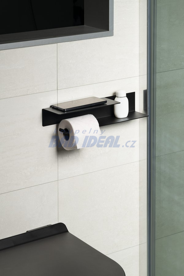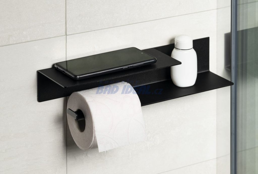 Držák toaletního papíru s poličkou š.35cm, černá mat.