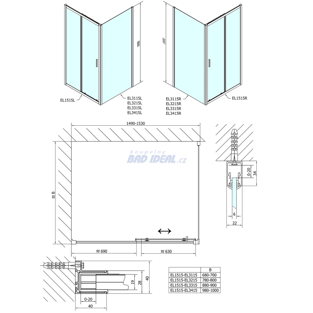 sprchové dveře 1500mm - EL1515