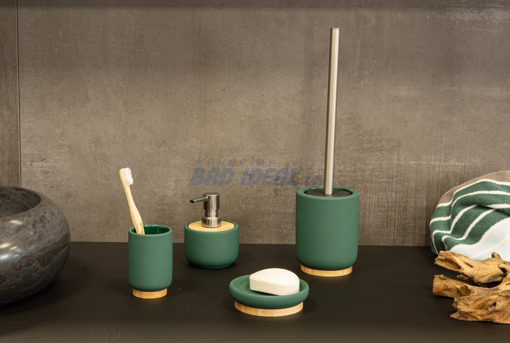 Série doplňků FANCY na první pohled zaujme zdařilým provedením. Příjemně oblé tvary a výběr ze tří barev (bílá, černá a tmavě zelená) je opravdovým lákadlem pro každou koupelnu. Stylové doplňky jsou vyrobeny z keramiky, která je potažena matným soft-touch povrchem, a bambusu.