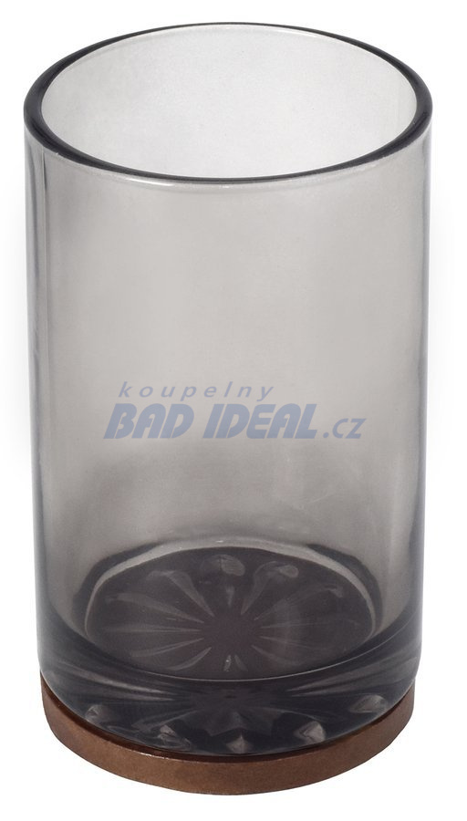 FIGO sklenka na postavení, kouřové sklo/dřevo.