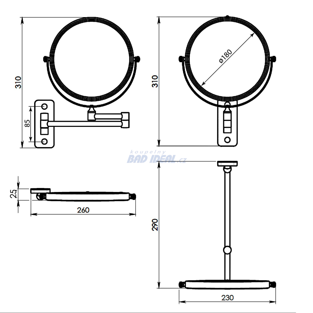 GAIA kosmetické zrcátko závěsné, Ø 180mm, oboustranné, chrom. Vlastnosti Značka GEDY Rozměr 230x310x290 mm Šířka 230 mm Výška 310 mm Hloubka 290 mm Barva Chrom Materiál Ocel Tvar Kruhové Instalace Vrtání Hmotnost / ks 0.88… Více informací