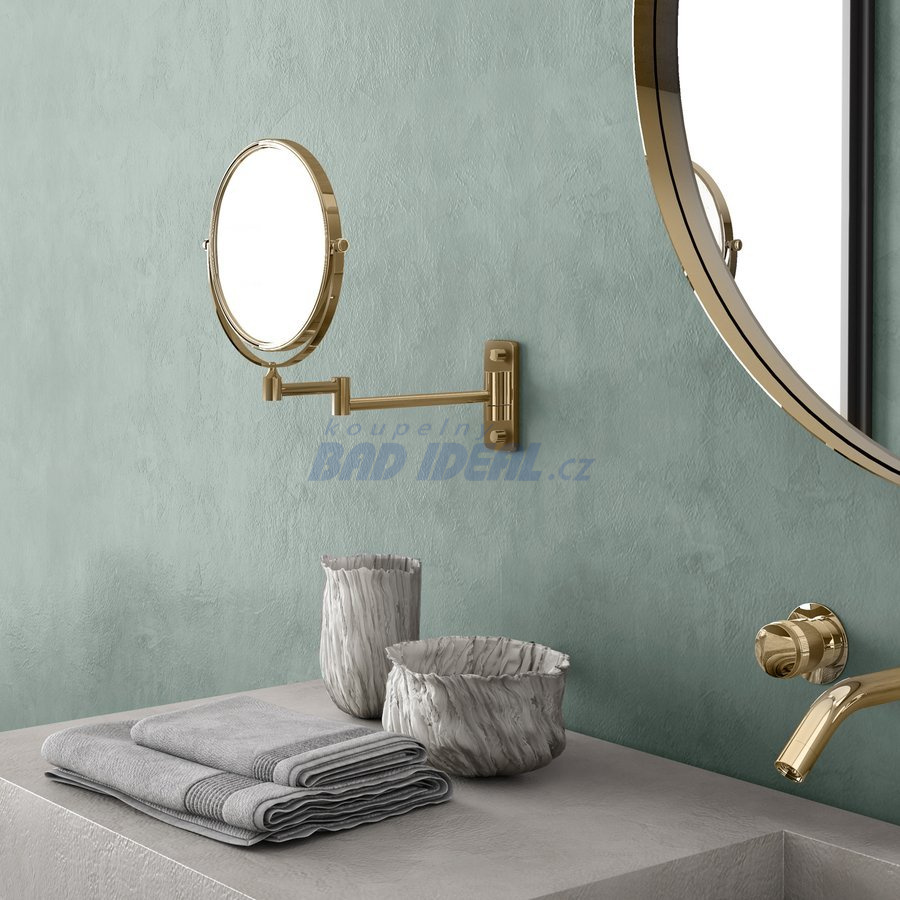 GAIA kosmetické zrcátko závěsné, Ø 230mm, oboustranné, zlato mat.