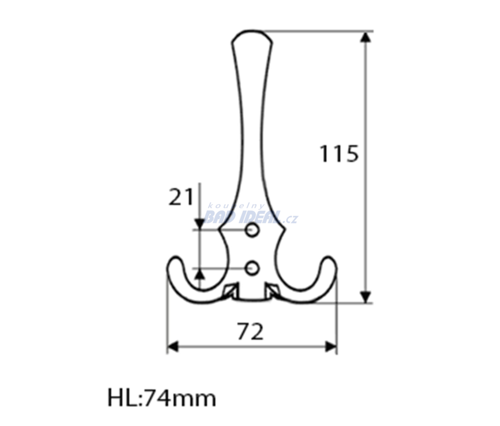 Háček velký, černá mat. Vlastnosti Značka AQUALINE Rozměr 72x115x74 mm Šířka 72 mm Výška 115 mm Hloubka 74 mm Barva Černá Materiál Slitina Tvar Retro Druh Dvojháček Instalace Vrtání Hmotnost / ks 0.048 kg Více informací
