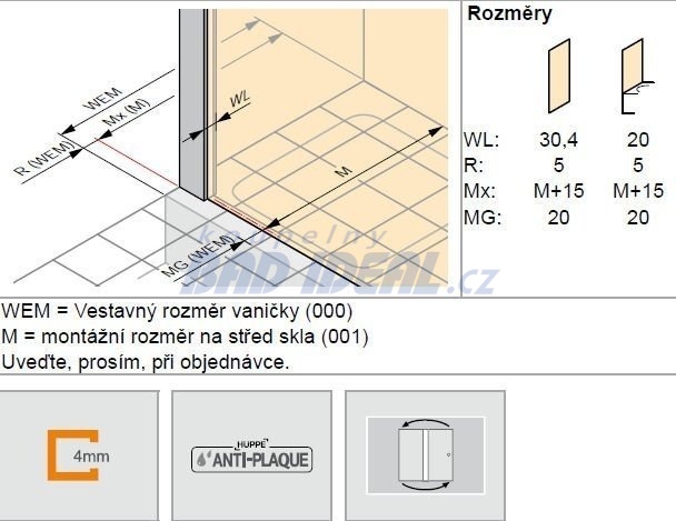 Posuvné dveře pro kombinaci s boční stěnou viz související zboží.