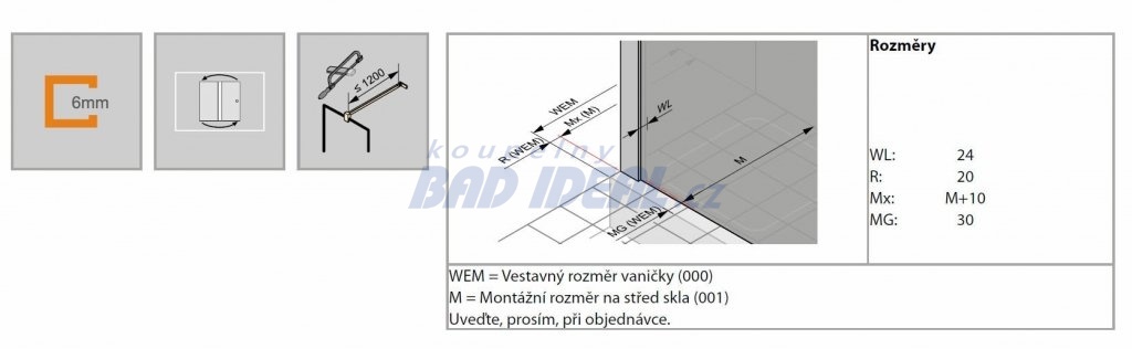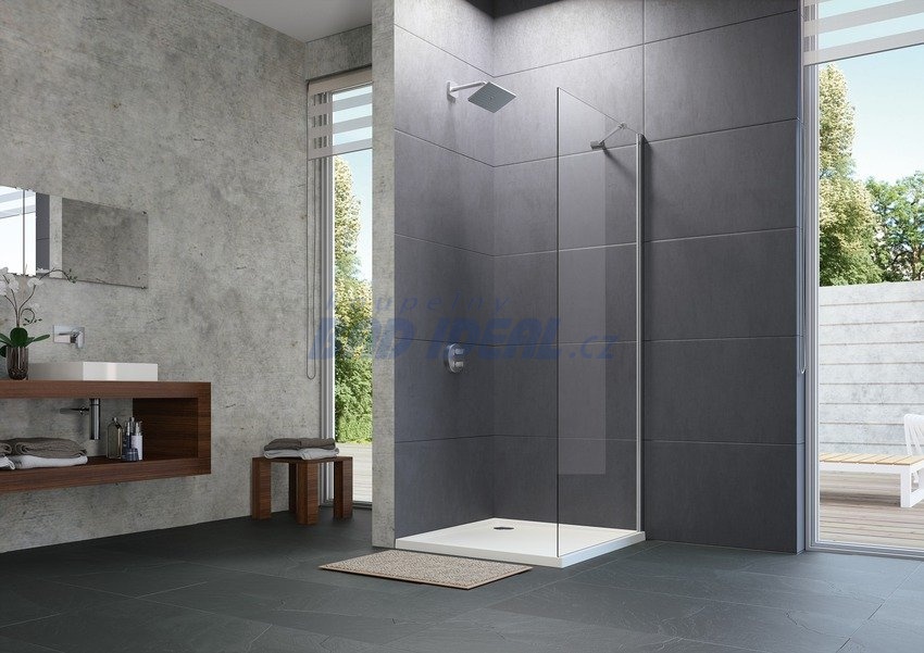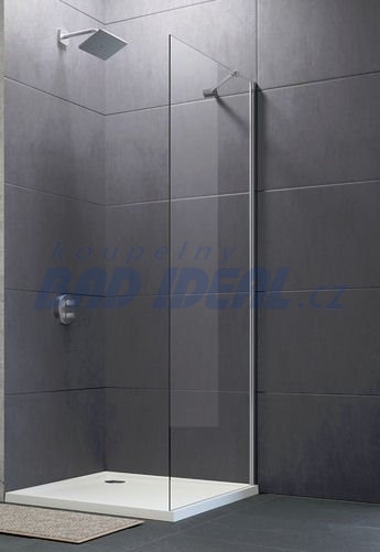 Walk-In boční stěna samostatně stojící se stabilizační vzpěrou, tloušťka skla 6mm, montáž na sprchovou vaničku nebo na podlahu (dlažbu).