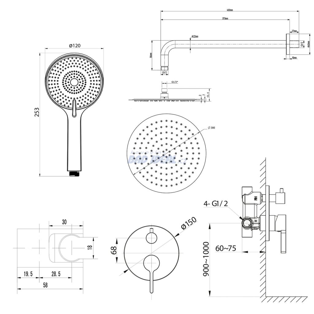 Funkce sprchy Déšť, Déšť/Masáž, Masáž
