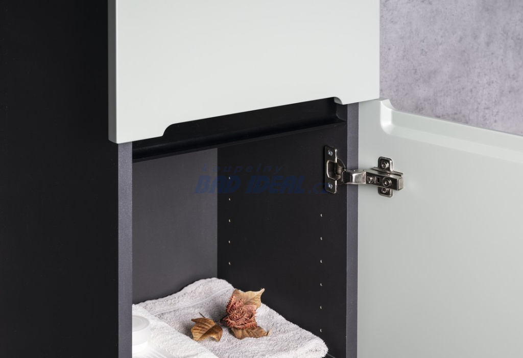 Nábytek je vybaven mechanismem zpomalovacích pantů u dvířek. Dvířka stačí jen lehce postrčit a ona se již sama dovřou.