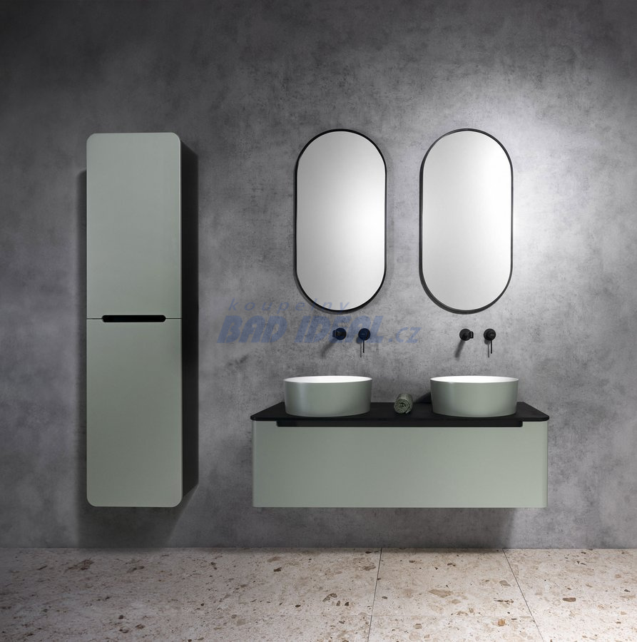 Lakovaná série nábytku KERALA pro umyvadla na postavení v moderních matných barvách se vyznačuje výrazným designovým prvkem - zaoblenými boky a čelem zásuvky. Skříňky jsou jednozásuvkové, bezúchytkové a s plynulým dovíráním. V nabídce jsou 2 typy desek o tl.12 mm: bílá matná Rockstone a černá matná kompaktní deska PREMIO z vysokotlakého laminátu. Díky zásuvce bez výřezu pro sifon lze umyvadlo na desku umístit libovolně po celé šířce skříňky. Umyvadlové skříňky nabízíme v šířkách 80, 100, 120 a 140 cm a lze je doplnit o vysokou dvířkovou skříňku ve stejném oblém designu.