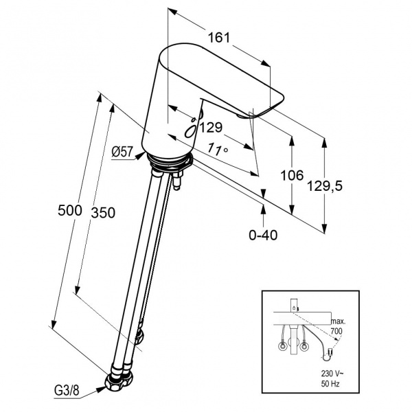 Elektronická umyvadlová stojánková baterie bez výpusti, chrom.