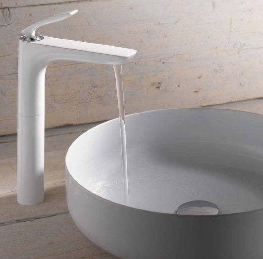 Umyvadlová vysoká stojánková jednopáková baterie KLUDI BALANCE bez výpusti, bílá/chrom.