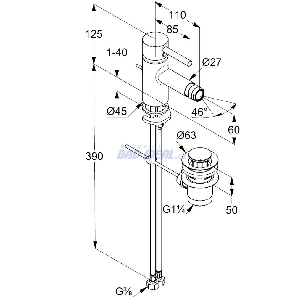 Bidetová stojánková jednopáková baterie s výpustí, chrom. SPECIFIKACE PRODUKTU: bidetová jenopáková baterie uzavřená páka jednootvorová montáž průtok 6l/min, při 3 bar kulový kloub-kaskádový perlátor M 24x1 keramická… Více informací