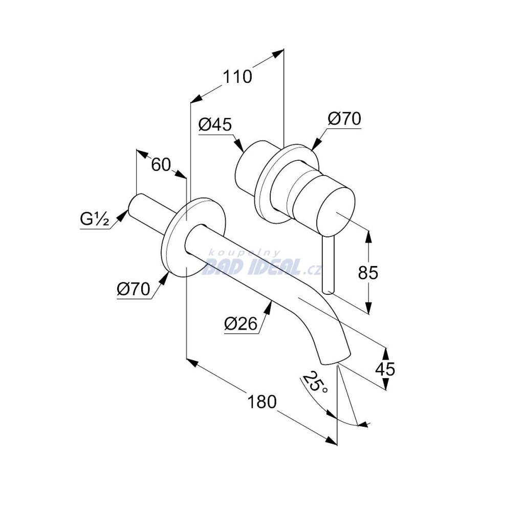 Podomítková umyvadlová dvouotvorová jednopáková baterie, vrchní díl, chrom