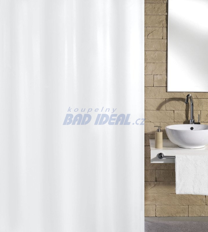 KOUPELNOVÝ ZÁVĚS KITO 240x180cm textilní, bílý SPECIFIKACE PRODUKTU: 240x180 cm (šxv) barva bílá 100% Polyester naimpregnovaný pevný horní pás s otvory pro kroužky dole zašité olůvko pro lepší splývání lze prát v pračce… Více informací