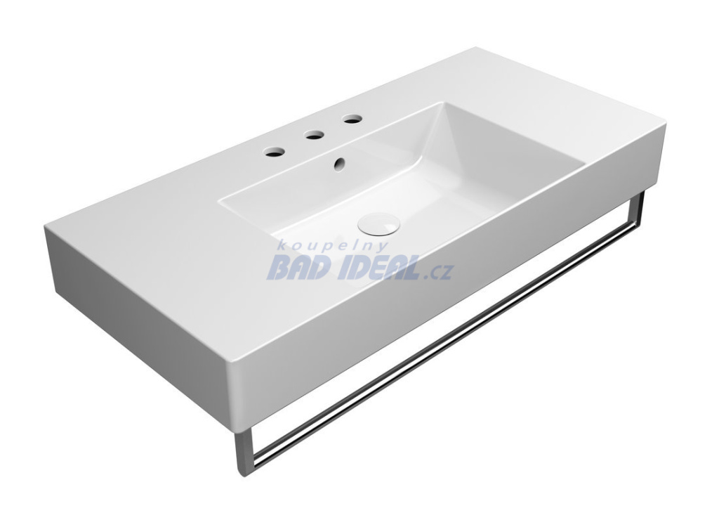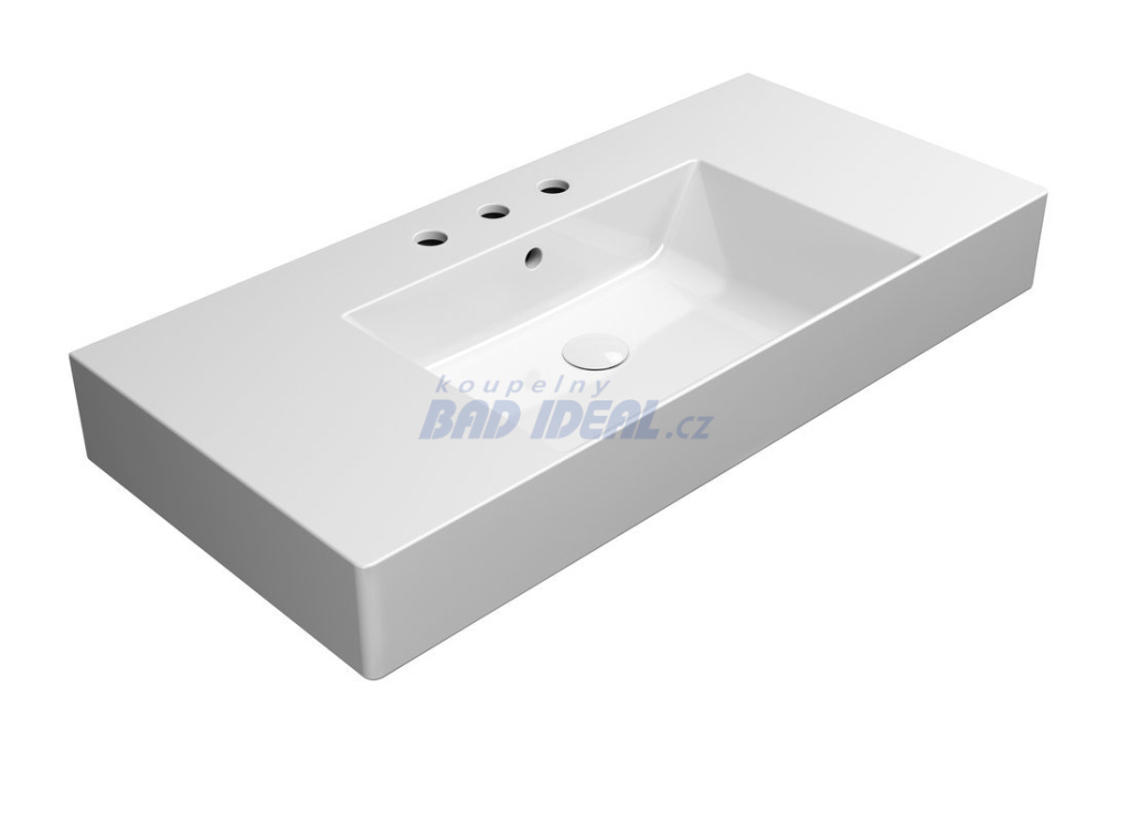 KUBE X keramické umyvadlo 100x47cm, s odkládacími plochami, 3 otvory, bílá ExtraGlaze.