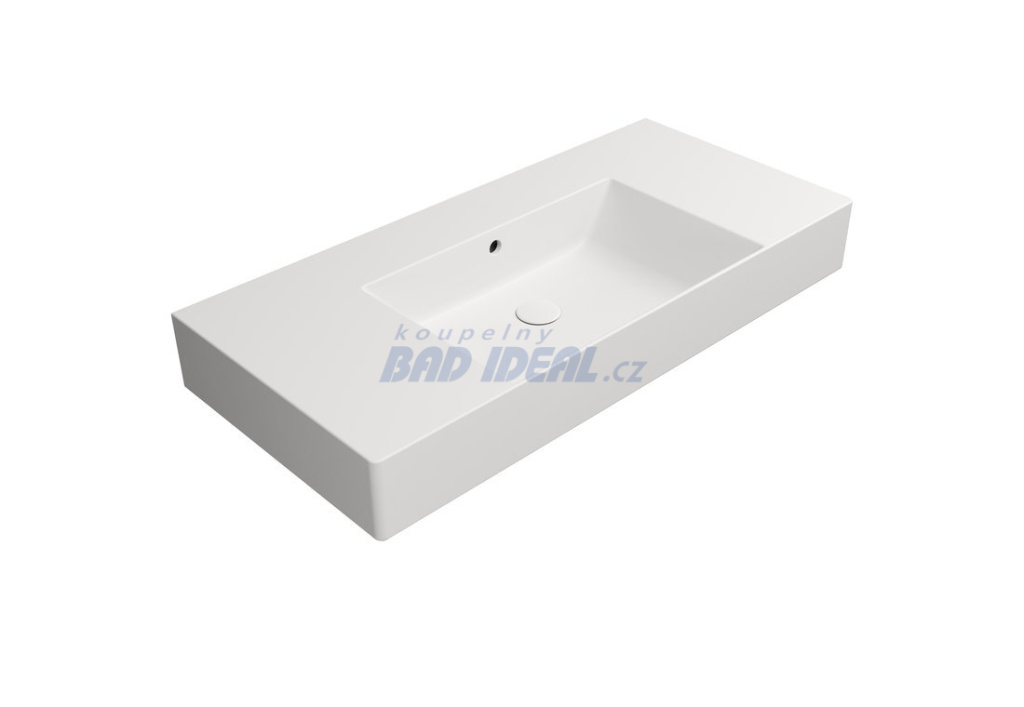 KUBE X keramické umyvadlo 100x47cm, s odkládacími plochami, broušená spodní hrana, bez otvoru, bílá mat. Vlastnosti Značka GSI Série KUBE X COLOR Rozměr 100x16x47 cm Šířka 1000 mm Výška 160 mm Hloubka 470 mm Barva Bílá mat… Více informací