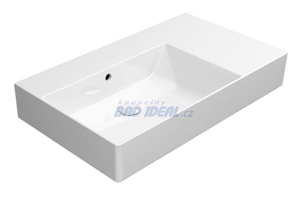 KUBE X keramické umyvadlo 80x47cm, s odkládací plochou vpravo, bez otvoru, bílá ExtraGlaze.