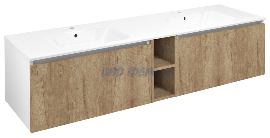 LOREA skříňka s dvojumyvadlem 181x46x51,5cm (80+20+80cm), dub alabama/bílá mat.