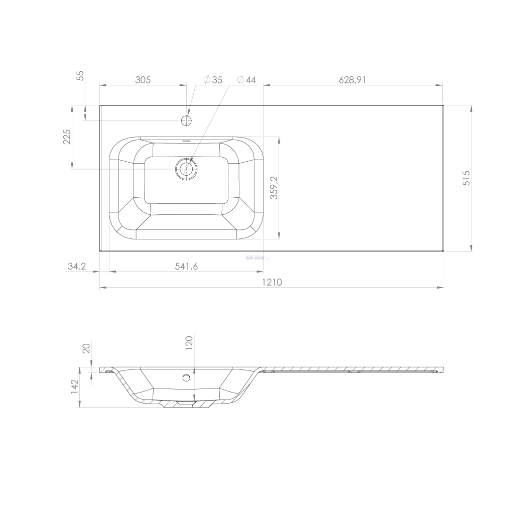 1x AC121L - ARECA umyvadlo, litý mramor, 121x51,5cm, levé, bílá