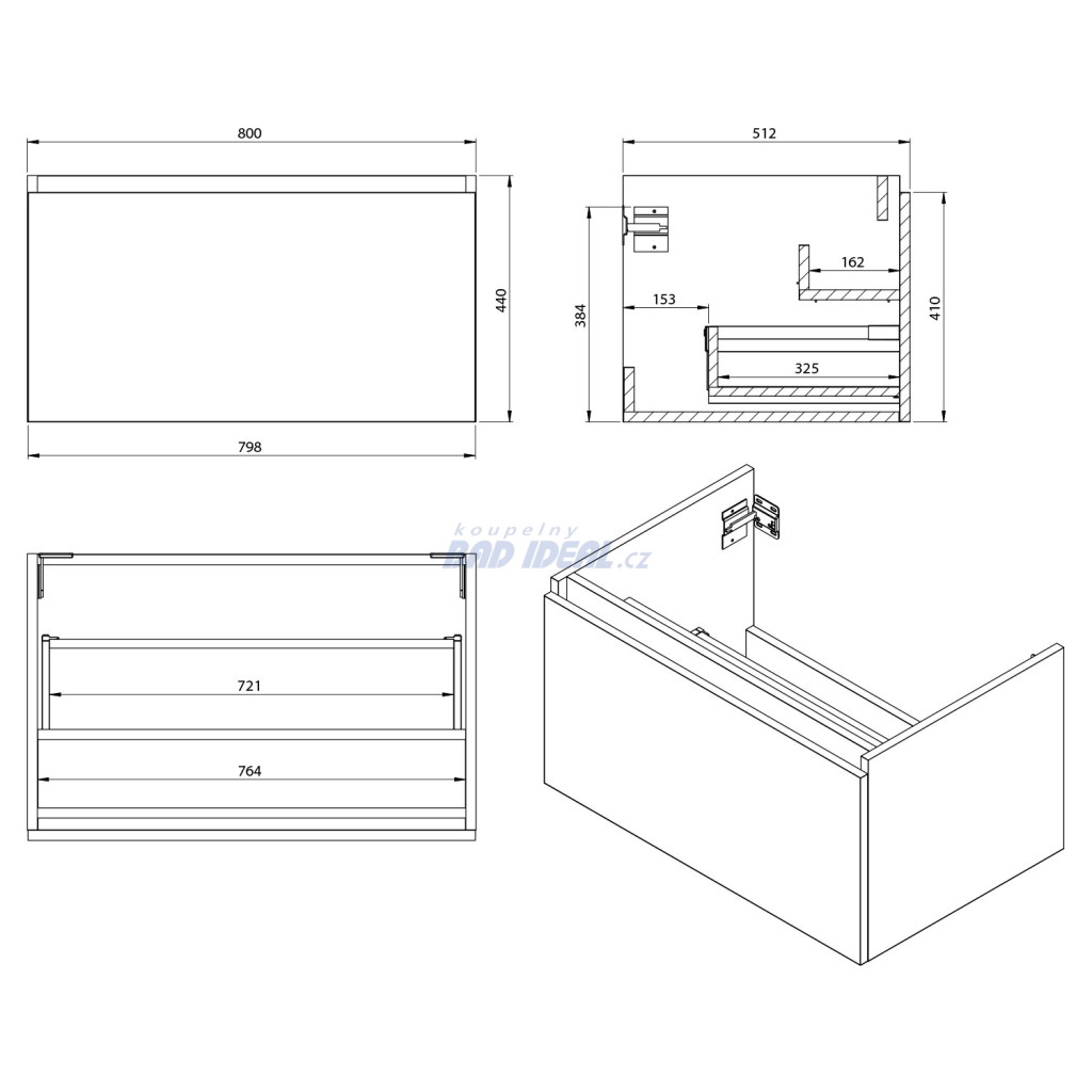 LOREA umyvadlová skříňka 80x44x51,2cm, 1x zásuvka, bílá mat.