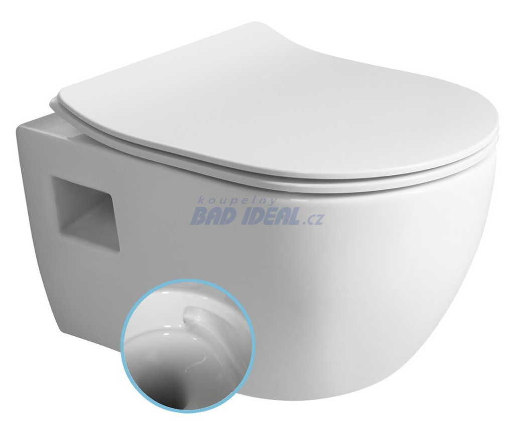 LUNA závěsná WC mísa, Vortex Rimless, 35,5x49cm, bílá.