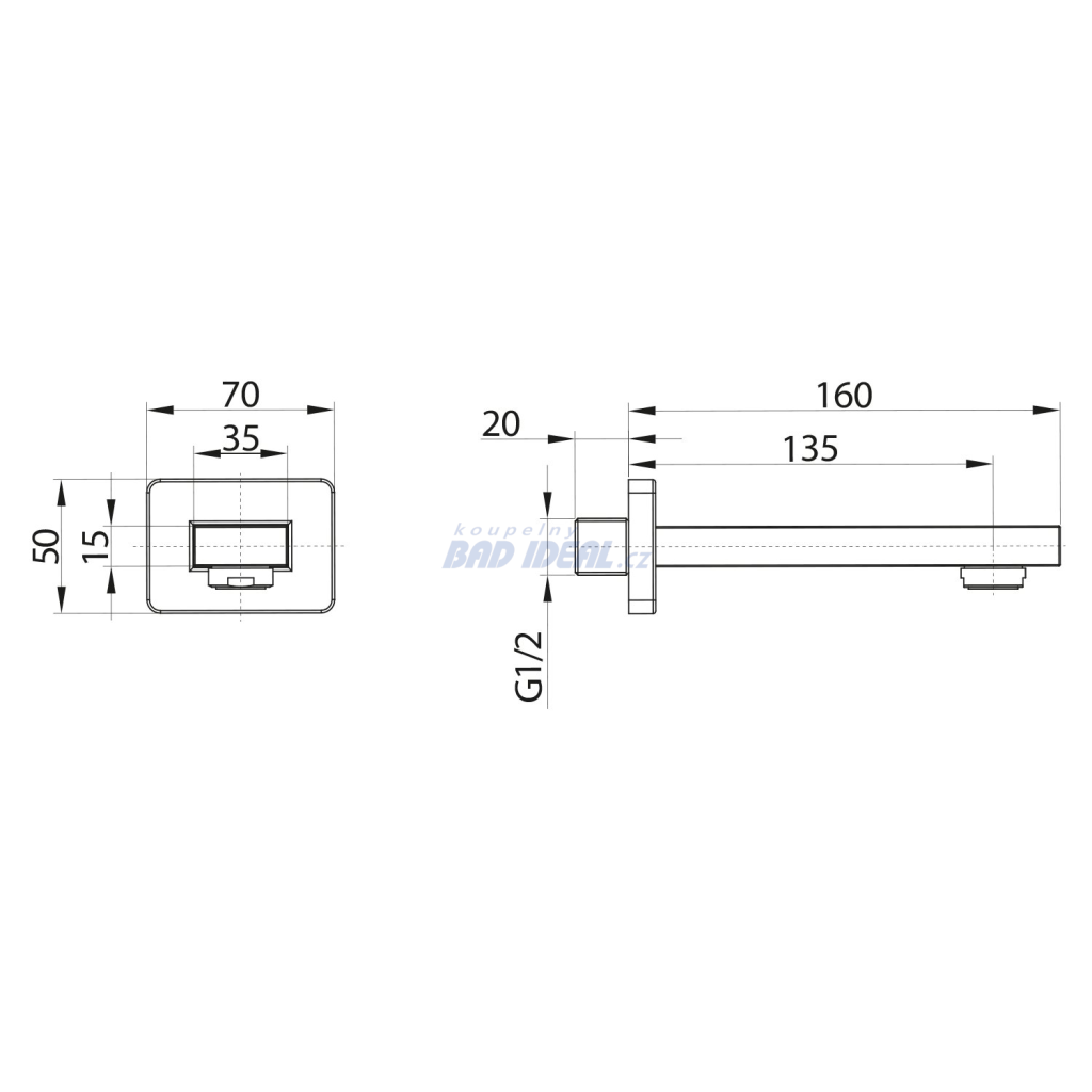Nástěnná výtoková hubice, hranatá, 160mm, chrom. Vlastnosti Značka SAPHO Šířka 70 mm Výška 50 mm Hloubka 160 mm Barva Chrom Materiál Mosaz Tvar Hranaté Instalace Nástěnná Hmotnost / ks 0.8 kg Více informací