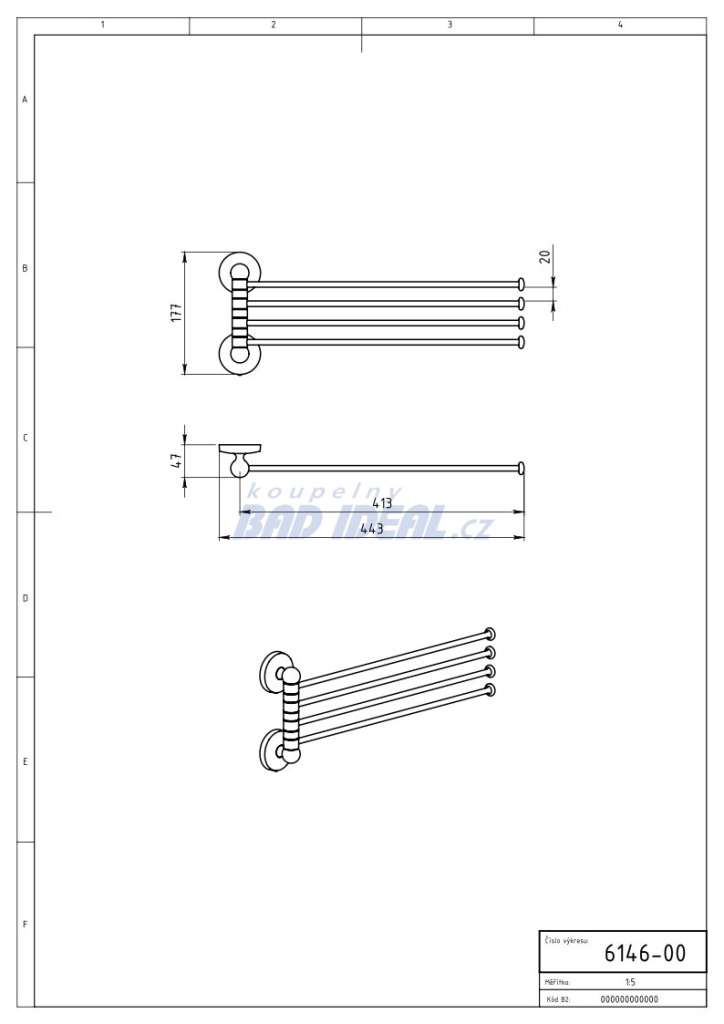 ČTYŘRAMENNÝ DRŽÁK RUČNÍKŮ CHROM 6146.0 Délka tyček 400 mm.
