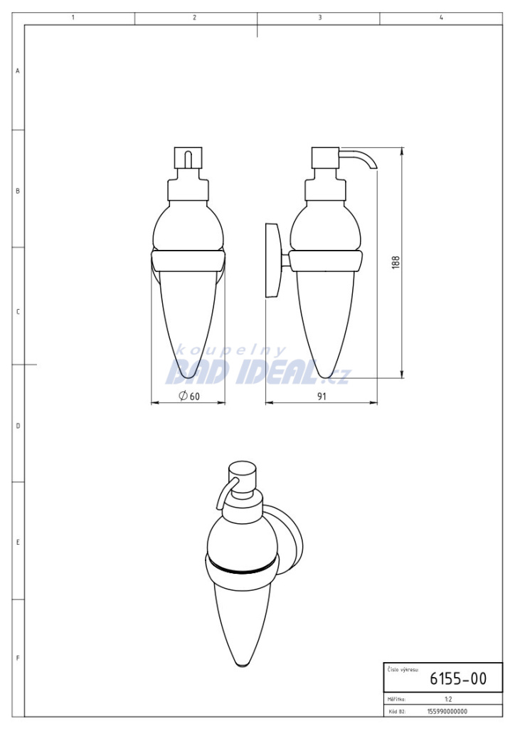 DÁVKOVAČ MÝDLA SKLO CHROM 6155.0 S chromovou kovovou pumpičkou. Objem 0,1 litru.