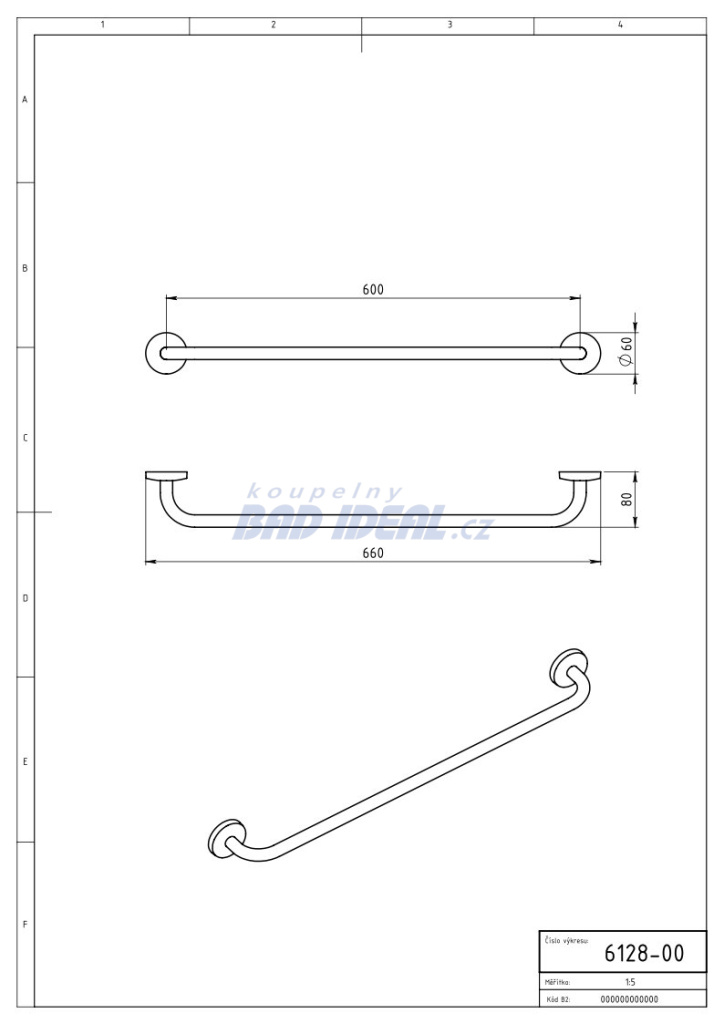 DRŽÁK RUČNÍKŮ 600 CHROM 6128.0 Rozměr 660 x 85 mm. Rozteč 600 mm.