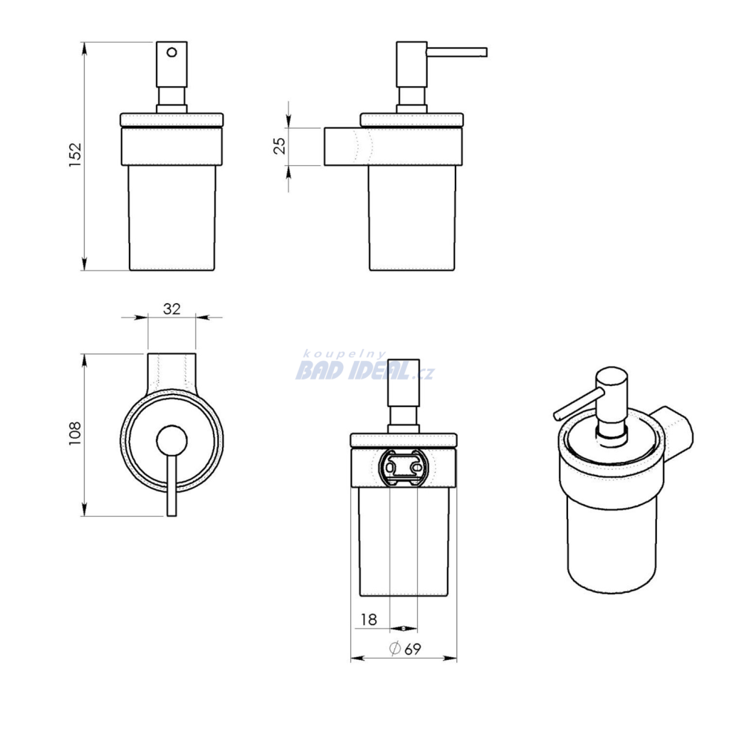 PIRENEI dávkovač mýdla 110 ml, mléčné sklo, gun metal.