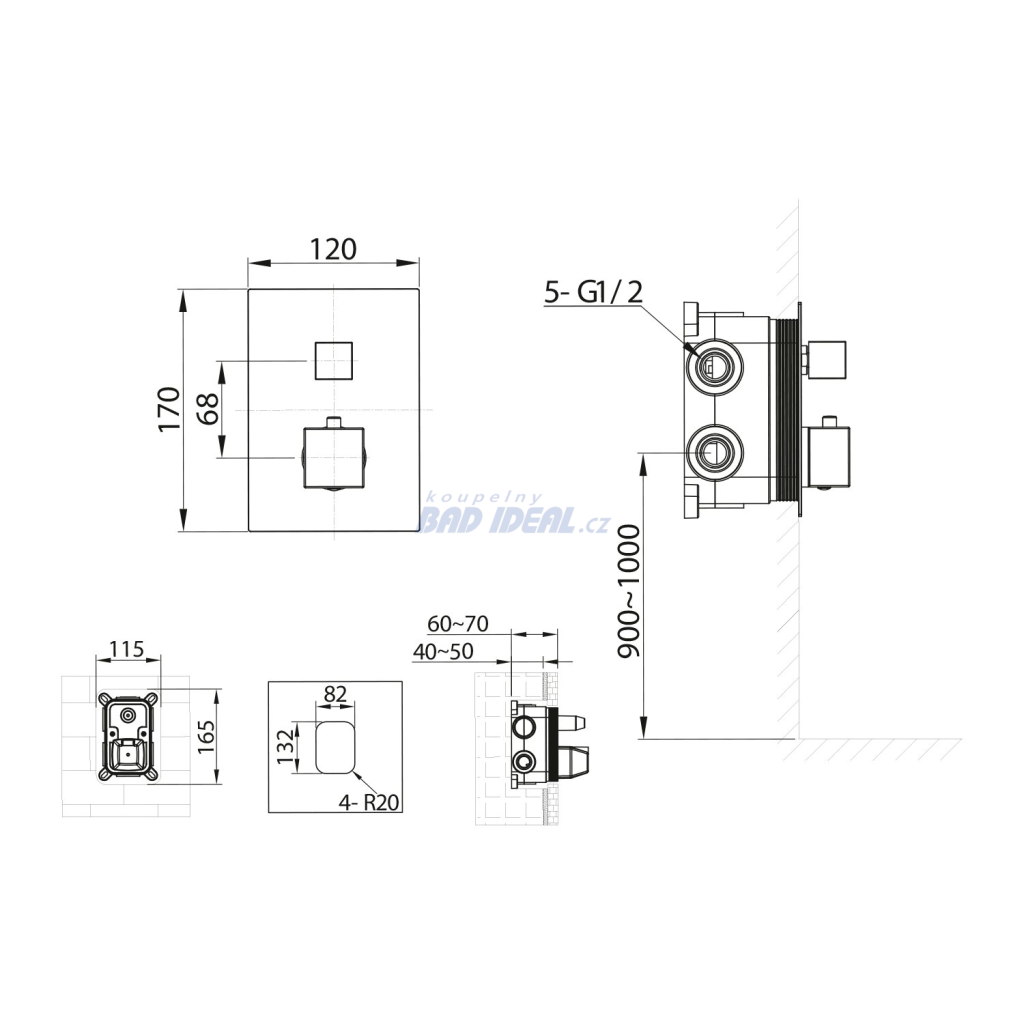 Podomítková sprchová termostatická baterie, box, 3 výstupy, chrom. Vlastnosti Značka SAPHO Šířka 120 mm Výška 170 mm Barva Chrom Materiál Mosaz Tvar Hranaté Instalace Podomítková Druh ovládání Termostat Přepínač na sprchu… Více informací