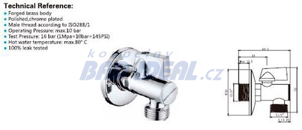 Rohový kulový ventil 1/2"x3/8", s filtrem, pár, chrom.