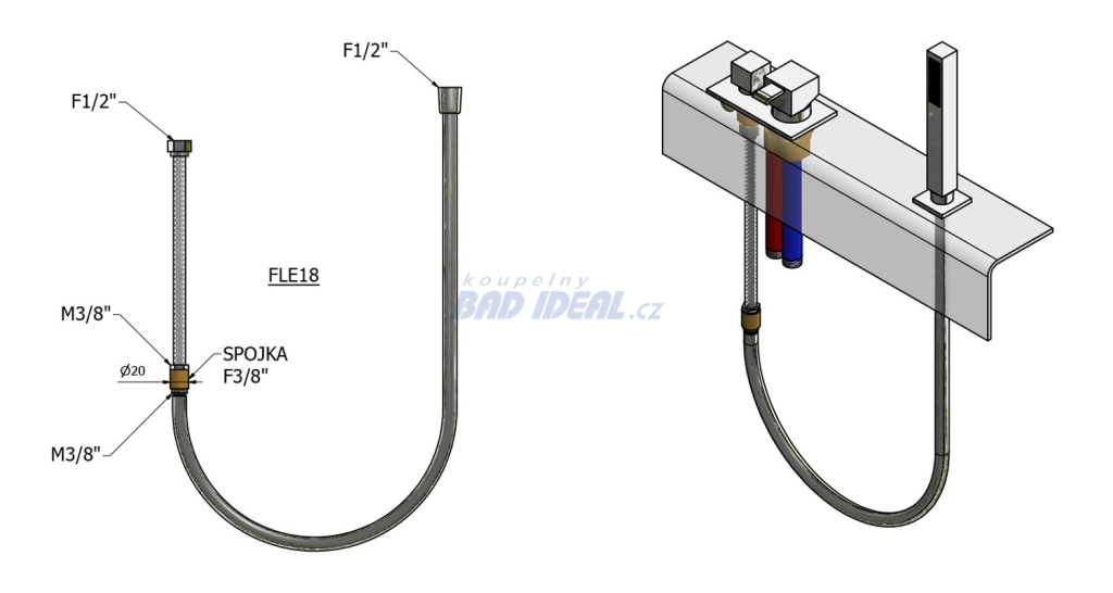 SET sprchové hadice pro výsuvné sprchy z vany, F1/2"- F1/2", 175cm, chrom.