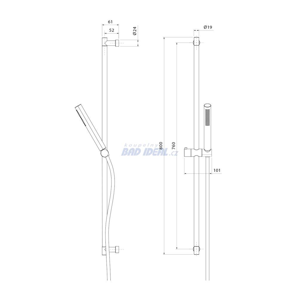 Sprchová souprava, posuvný držák, 800mm, zlato mat.