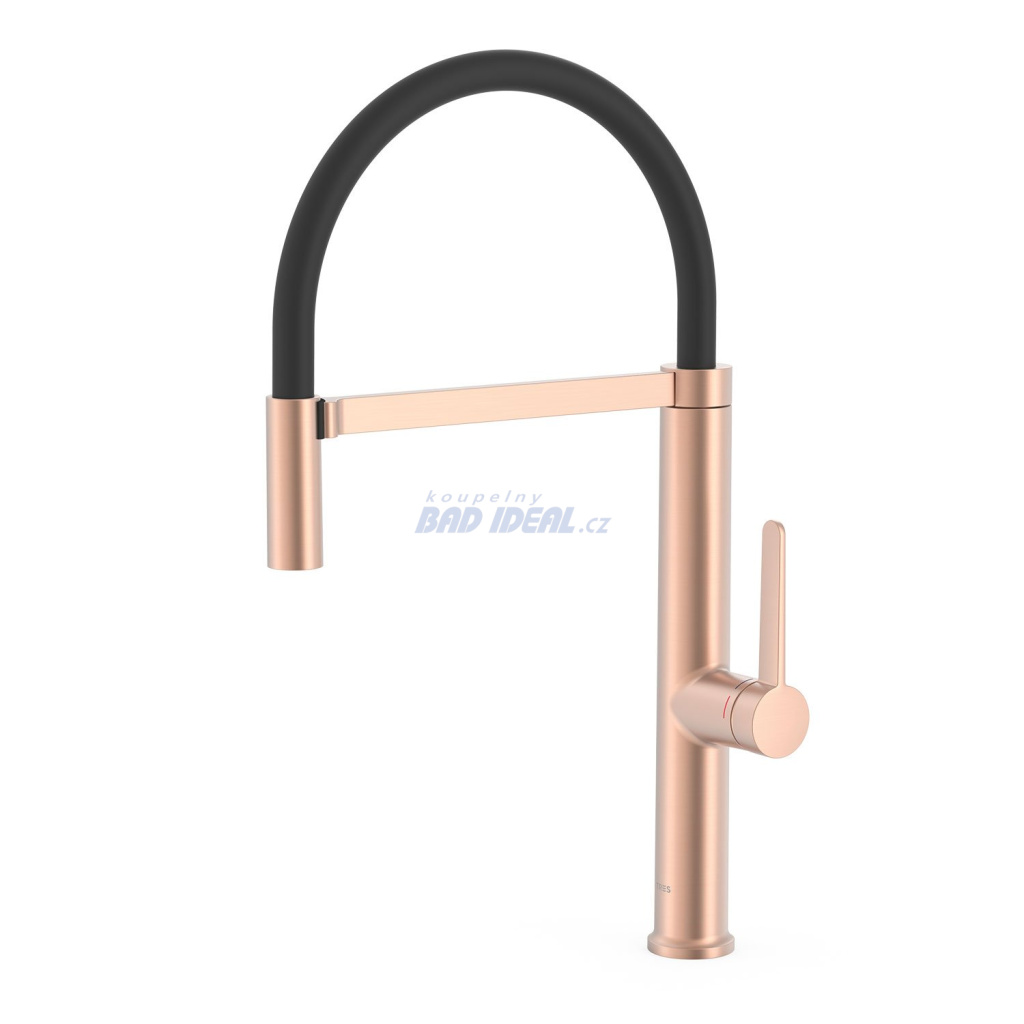 TRES dřezová jednopáková baterie s flexibilním výtokem v provedení matné růžové zlato 24K. 230.487.01.OPM
