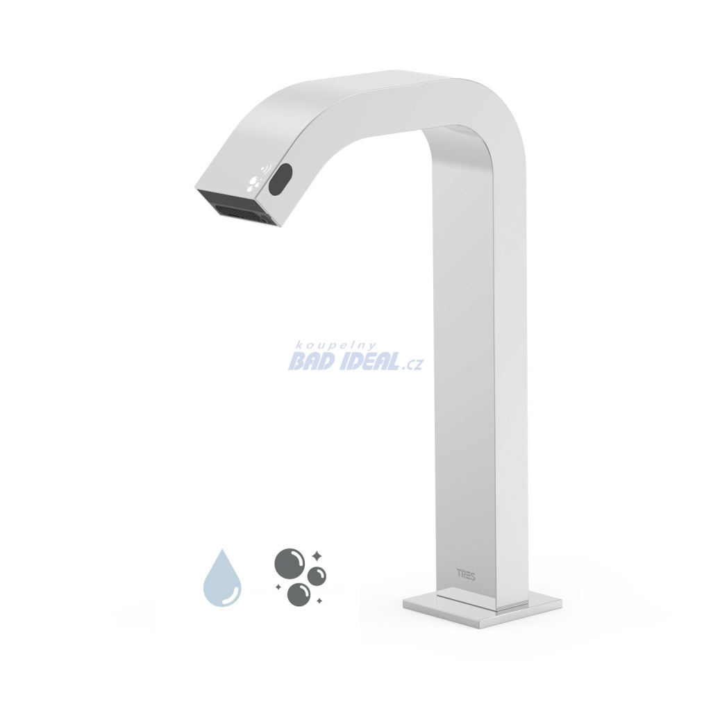 TRES ELECTRONIC Elektronická baterie na 1 vodu s bezdotykovým dávkovačem mýdla, vysoké provedení, chrom - voda i mýdlo v elektronické baterii Tres. Hygienická bezdotyková řešení. Spouštěna snímačem infračerveného záření.… Více informací