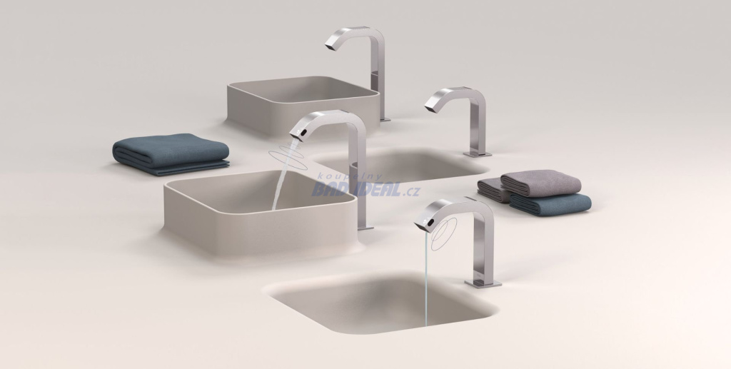 Bezdotykové umyvadlové baterie s jednou anebo dvěma funkcemi jsou ideálním řešením do koupelen v kolektivních zařízeních. Své příznivce si ale čím dál tím častěji nacházejí i mezi majiteli bytů a rodinných domů. Příkladem takového využití je WC pro hosty. Tam, kde není místa nazbyt, ale kde v podobě této baterie ještě prostor ušetříte. A díky vestavěnému dávkovači mýdla se vaše návštěvy vyhnout většímu kontaktu se zařízením. Snímací vzdálenost senzoru je seřiditelná podle konkrétní situace.