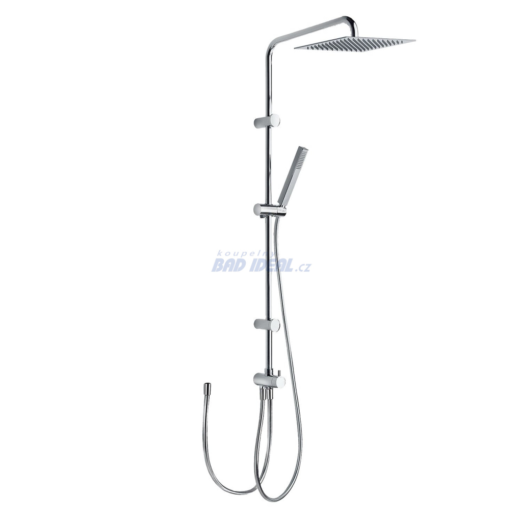 Sprchová souprava, proti usaz. vod. kamene. Posuvná tyč na nástěnných držácích. Pevná sprcha 250x250 mm. Sprcha, proti usaz. vod. kamene. Flexi hadice SATIN. Pro nástěnné baterie sprchy a vany-sprchy. V chromovém provedení. 061.635.06